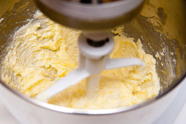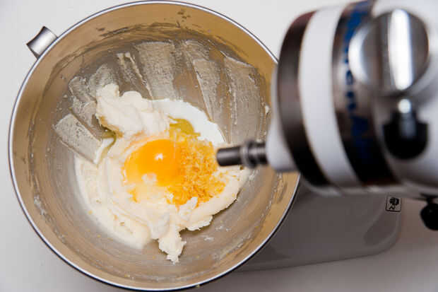 Añadir huevo, jugo de limón, ralladura de limón y la sal. Continuar batiendo hasta que se mezcle bien.