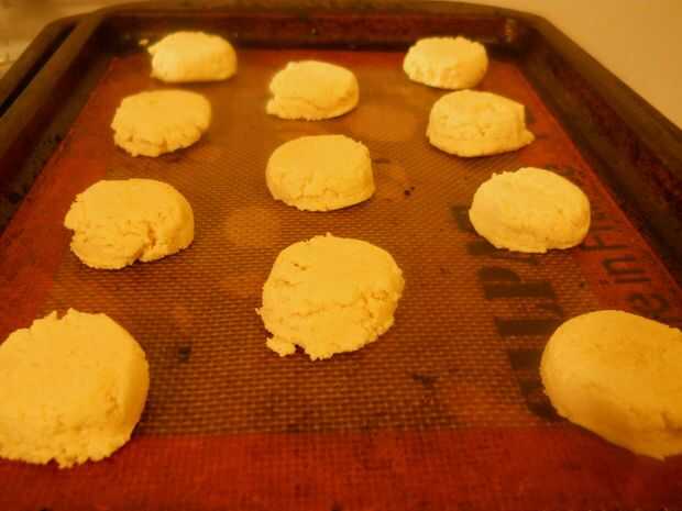 2. Transferir las bolas aplanadas de pasta en galletas forrada, colocándolos unos 1 1/2 pulgadas de distancia (más si las cookies son más grandes)