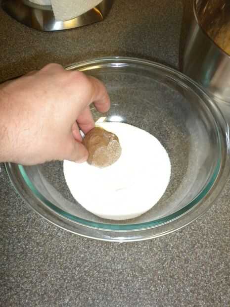 Con la una 1/2 taza de azúcar en un recipiente aparte el rodillo cada bola de masa hasta cubrir de azúcar.
