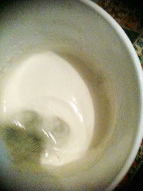 Luego poner una bolsa en una taza y vierta la mezcla en la bolsa