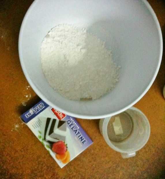 mezclar el azúcar y agua y stirover bajo fuego... Espolvorear la gelatina sobre ella y mezclan bien