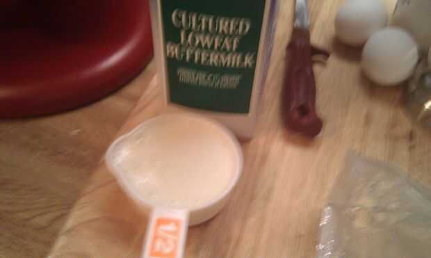 y bata con un tenedor hasta mezclado. Con mezclador en Med agregar mezcla de suero de leche a la harina mezcla que todo en una vez y mezcla sólo hasta humedece.