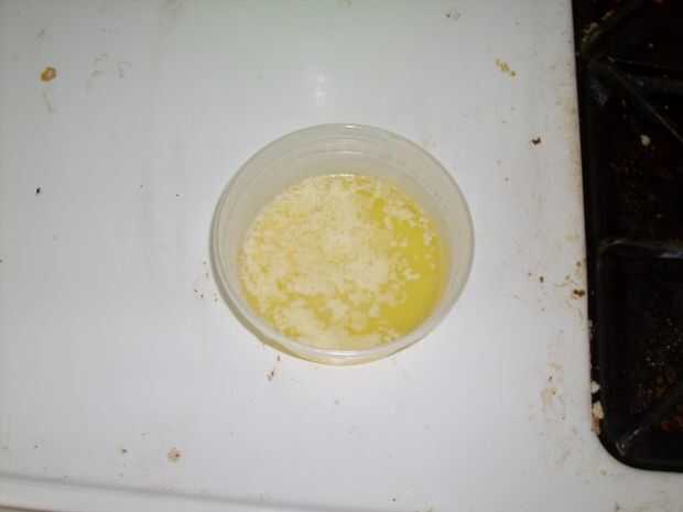 Una vez que su brazo empieza a doler, tomar la mantequilla (2-3 cucharadas) y colocarlo en su unidad de contención de fusión. (cosita de plástico). Si frío de microondas por 30 segundos (30 segundos si caliente, demasiado), luego poner rápidamente en su tazón de fuente. En este punto, tienes que mezclar muy bien, durante unos 5 minutos, tiempo suficiente para que la mantequilla se enfríe.
