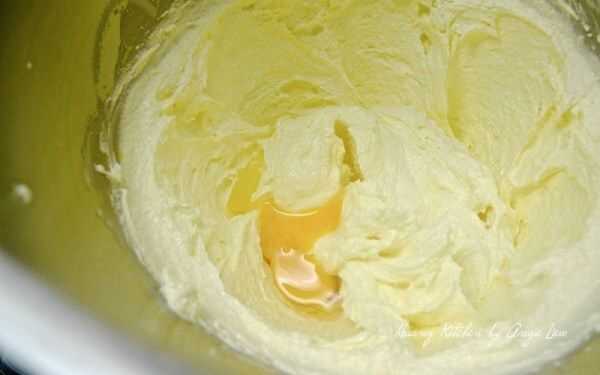 Con la batidora a velocidad baja, agregar los huevos uno a la vez y mezcle durante unos 20 segundos antes de la adición siguiente. Cuando los huevos se han agregado, aumentar la velocidad a media y batir la mezcla de huevo durante 2 minutos. Formarán crestas en el tazón de mezclar después el tirón de las aspas a través de la mezcla y se pega al lado del tazón de fuente. La masa será más ligera en color que conserva las burbujas de aire. Entonces el bateador será esponjoso y aireado.