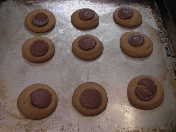 Una cosa que no tomar en cuenta al hacer estas galletas era cómo fácilmente se derrite el chocolate. En el futuro lotes: voy a tratar de hornear la galleta primero (sin el sombrero), luego agregar el topper inmediatamente cuando se pone el horno. Si eso no funciona, también podría intentar agregar el sombrero cuando se realiza la cookie, y ponerlo de nuevo en el horno durante otros 30 segundos dejar que se derrita un poco.
