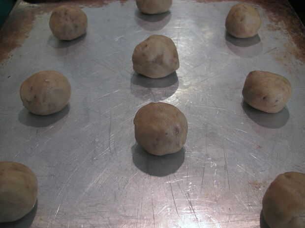 - Diferentes bolas de masa sobre la bandeja para hornear galletas