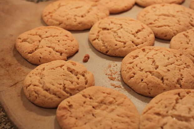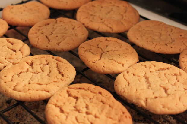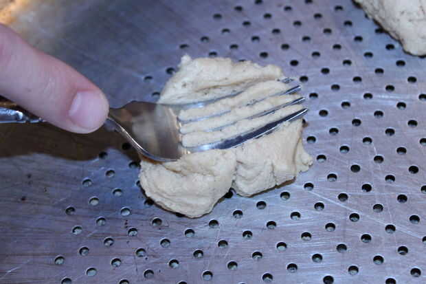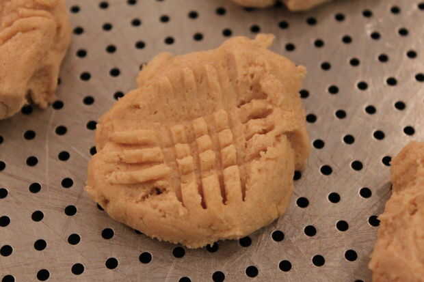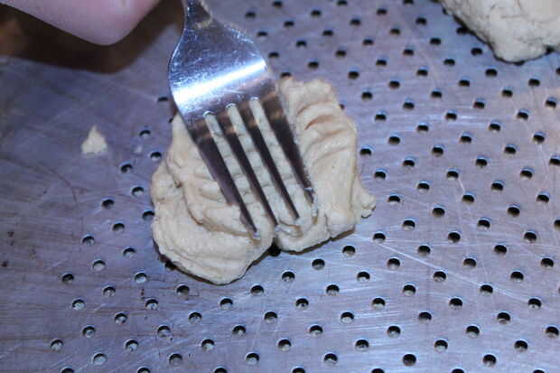 Primero precalentar el horno a 375. A continuación, agarrar aproximadamente una pulgada de bolas de masa y colóquela sobre una piedra de pizza. Utensilios son opcionales, pero no es lavarse las manos. No ponerlas demasiado cerca tampoco. Expanda mucho. Luego coge un tenedor y presione hacia abajo de dos formas diferentes, creando un criss cruz patrón. Esto no es necesario, pero me gusta cómo se ve. Finalmente ponerlas en el horno para cualquier lugar de 10-13 minutos. Comprobar a menudo después de la marca de 10 minutos. Una vez que hayan terminado Déjelos enfriar durante unos cuatro minutos. Entonces puede transferirlos a una rejilla para terminar de enfriamiento.