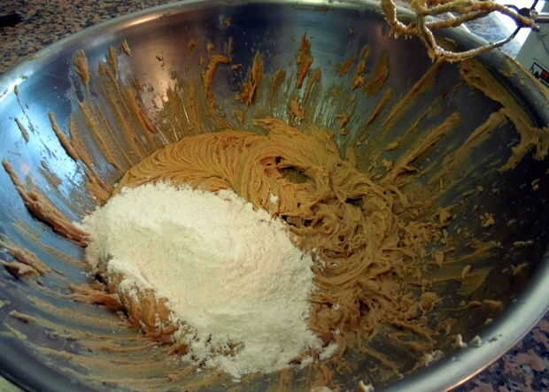 En otro tazón, combine la harina, el polvo de hornear y la sal y se mezclan para que el polvo de hornear y la sal se mezclan realmente en, luego, poco a poco, agregue a la mezcla de mantequilla de maní. Otra vez, después de cada bit puede añade, mezcla y rebañe el plato para asegurarse de que usted no consigue cualquier bolsillos poco de harina en cualquier lugar.