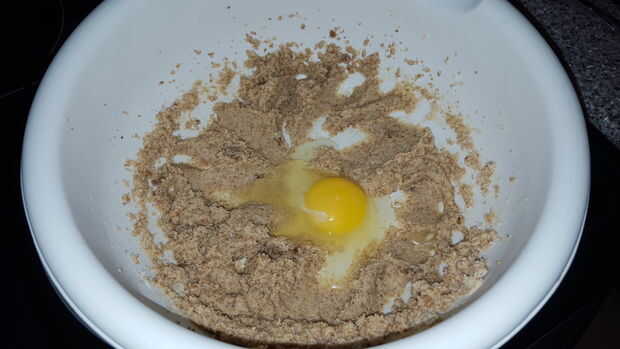 Añadir el huevo a la masa e incorporarlo lentamente a lo largo de