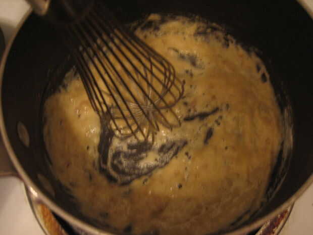 5. Continuar batiendo hasta que la mezcla comience a burbujear y Dora un poco