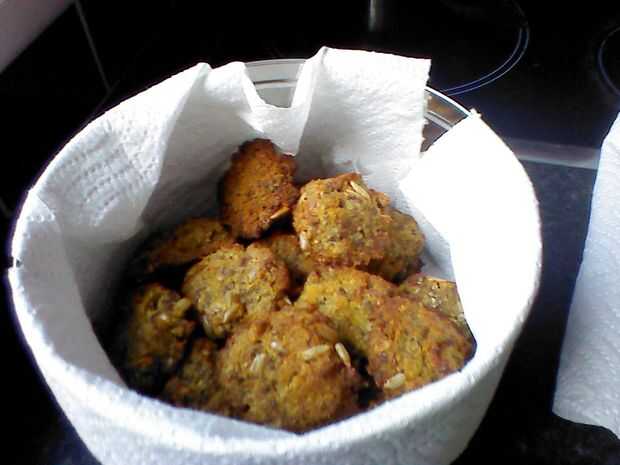 esta es otra receta super saludable (y lo digo) :) Una vez más, estas galletas son realmente buenas para su salud, debido a que contienen un poco de miel, manzanas (fibras), semillas y almendras. Yo al horno para ser entregados en bolsitas para el árbol de Navidad calendario de Adviento