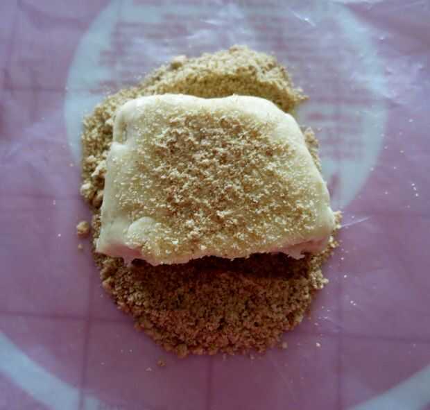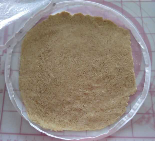 Poner 1/4 de las migajas de la oblea de vainilla (o harina AP) en superficie de trabajo, con masa de empanada, superior con las migas más 1/4 y estirar masa. A medio camino a través de la capa de rodadura la parte superior e inferior con la otra mitad de la vainilla las migas de la oblea y seguir rodando hasta obtener una masa de 1/8 de pulgada de espesor.