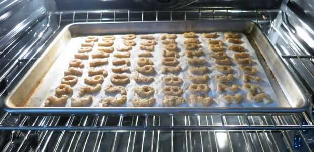 Hornear hasta crujiente y dorado. El pequeño unos toman unos 15-20 minutos, recortes más grandes toman más tiempo, gire el frente de hoja para hornear para volver a mitad de cocción. Traslado a estante de enfriamiento, deje enfriar a temperatura ambiente.