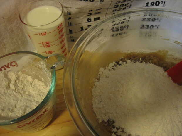 6. Agregue leche y la harina restante