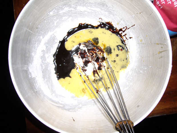 A esta mezcla blanco cremosa añadir la melaza y el huevo. Combinan muy bien.