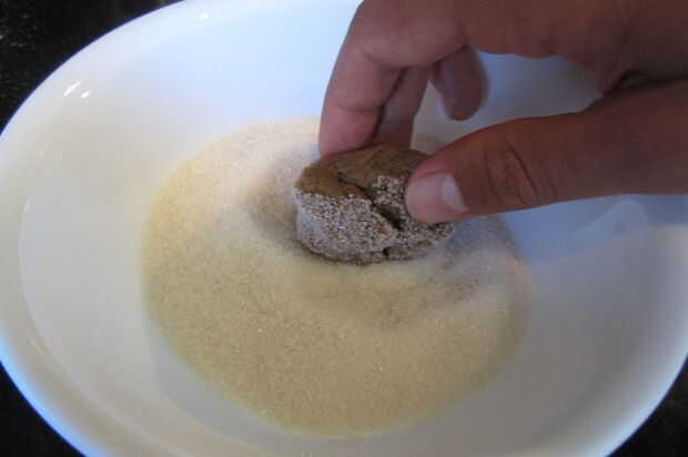 Vierta el azúcar blanco en un recipiente poco profundo. Formar la masa en bolas de 1 pulgada y en azúcar hasta que estén cubiertas.