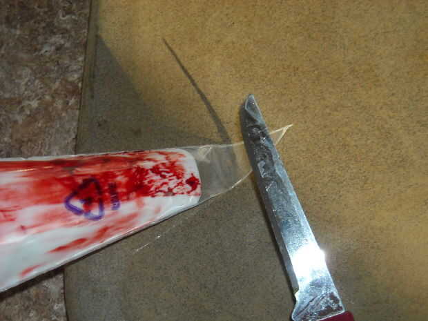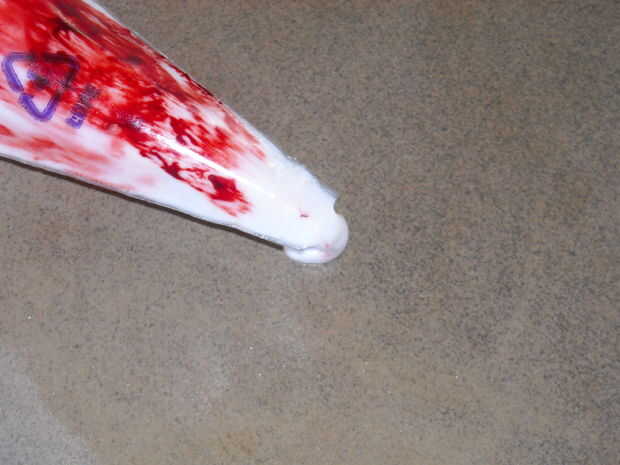 Oh, y si tienes un problema y el merengue deja de salir, probablemente es un pedazo de menta que se atascó en la punta de la bolsa. Me parece que generalmente puedo coger un cuchillo y sáquelo.