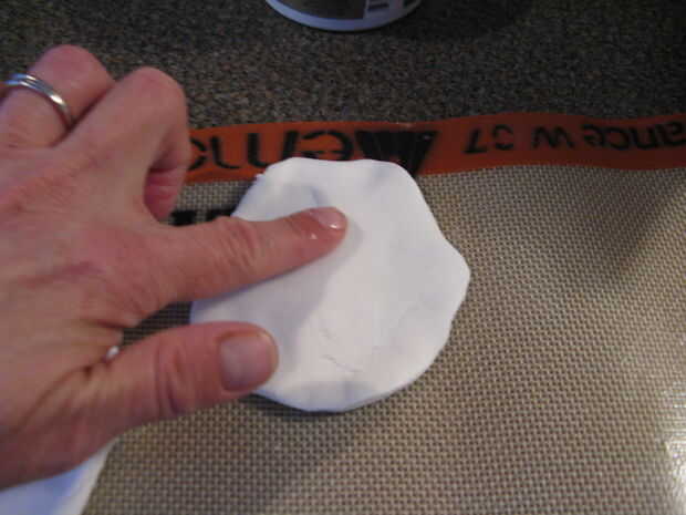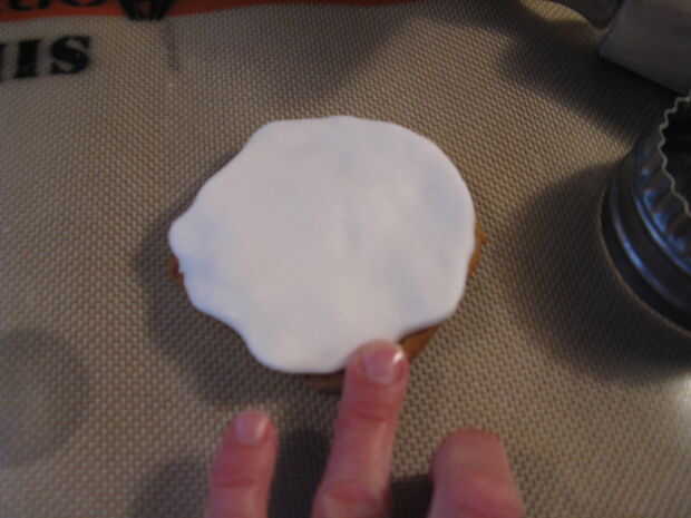 Frotar un poco de agua sobre el lugar encima de la galleta y fondant (para que se adhiera a la cookie)