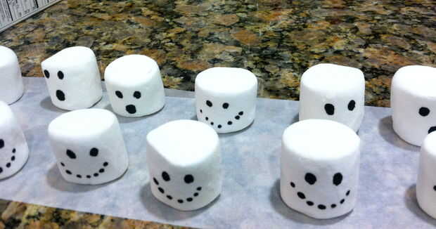 1. Tome un malvavisco y dibujar una cara de muñeco de nieve. Asegúrese de que hay espacio entre los ojos y la boca así que usted puede la pipa fuera una zanahoria para la nariz del muñeco de nieve.