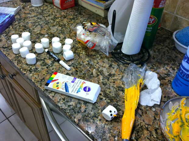 * Dependiendo de cuántas cookies fueron capaces de cortar, hacer tantas cabezas de malvavisco según sea necesario.