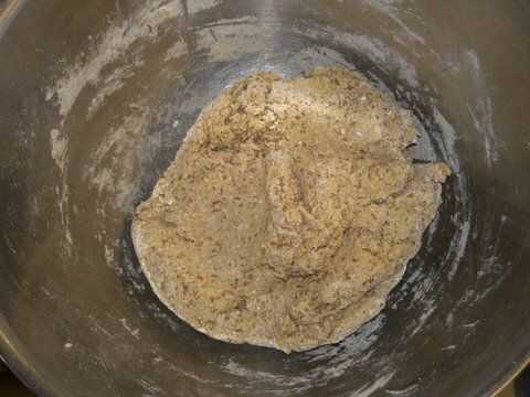 Tiempo para realmente llegar a esto - amasa (como tu estaban haciendo pan) para 3 minutos... sobre el tiempo te llevaría a cantar su canción favorita. La masa debe ser rígida como en la foto. Me gusta amasar en el recipiente grande. Menos de un lío en el mostrador - un lío contenido.