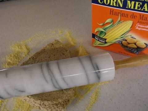 Tomar una cuarta parte de la masa.  Superficie con harina de maíz de harina y estirar la masa a 1/4" de espesor.