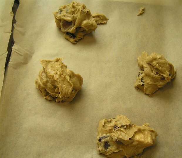 Divida la mezcla en porciones iguales 18. Forma aproximadamente cada porción en forma de bola. Poner en un la cocción hojas bien separadas para permitir la difusión. Aplanar ligeramente, pero no totalmente!, cada galleta con el alcance de su mano.