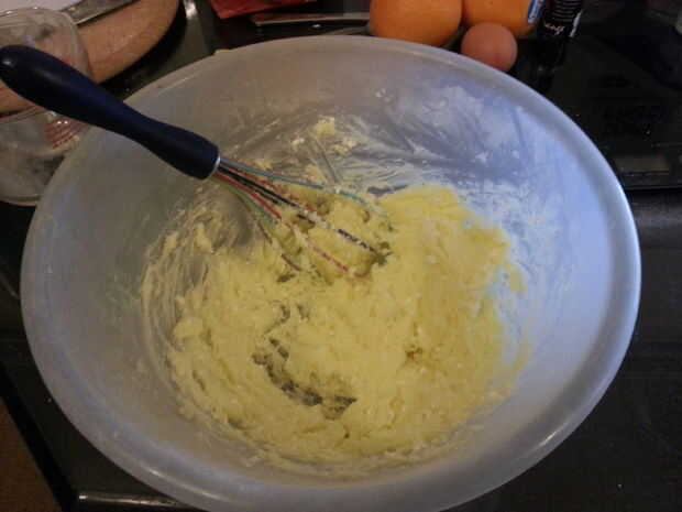 Una vez que se hace la masa, dejarla en el recipiente a temperatura ambiente mientras preparas las naranjas. La masa se vuelve más viable después de un descanso.