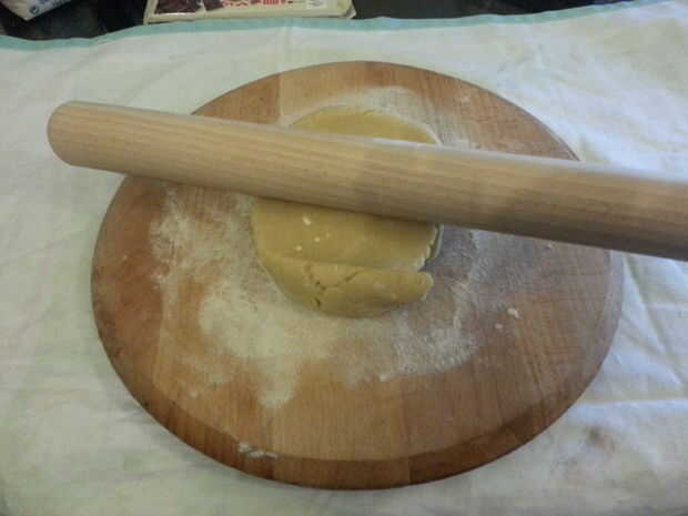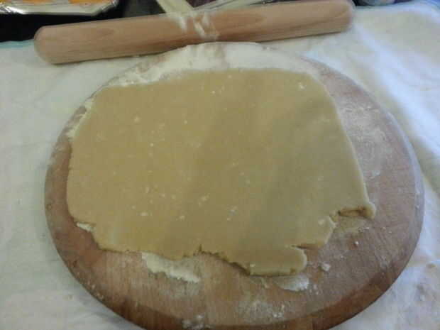 El está listo para el corte. Puede usar cortadores de la galleta convencional si dispone de ellos, si no un vaso de cerveza o vasos hará el trabajo.