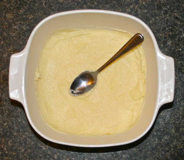 Crema juntos 1 1/2 tazas de mantequilla, 1 cucharadita vainilla, 1/8 cucharadita de sal y azúcar blanca 1 taza granulado. Una vez bien mezclado, añadir 3 tazas de harina y mezclar. La masa estará muy suave y posiblemente un poco grumosa - maneje con cuidado.