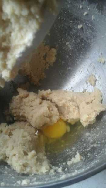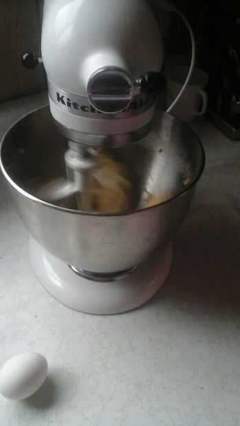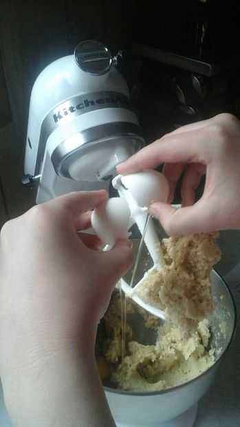 Agregue uno de los huevos y batir la mezcla. Repetir.