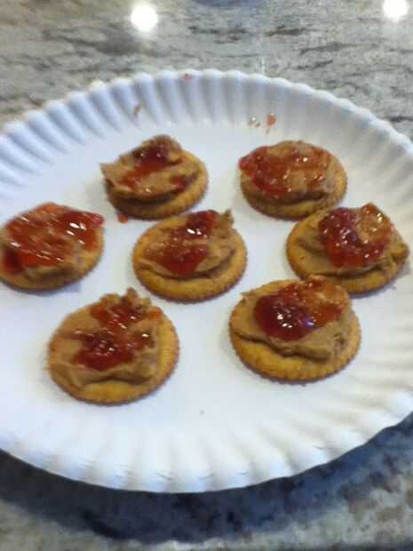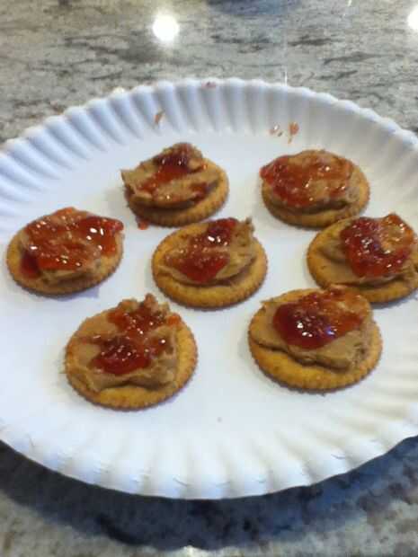 En primer lugar, se separó un poquito de mantequilla de maní en cada galleta. No tiene que ser perfecto. A continuación, os ponemos algunos jalea encima de cada uno. Personalmente me gusta la mermelada de fresa, pero que sería divertido probar diferentes sabores.