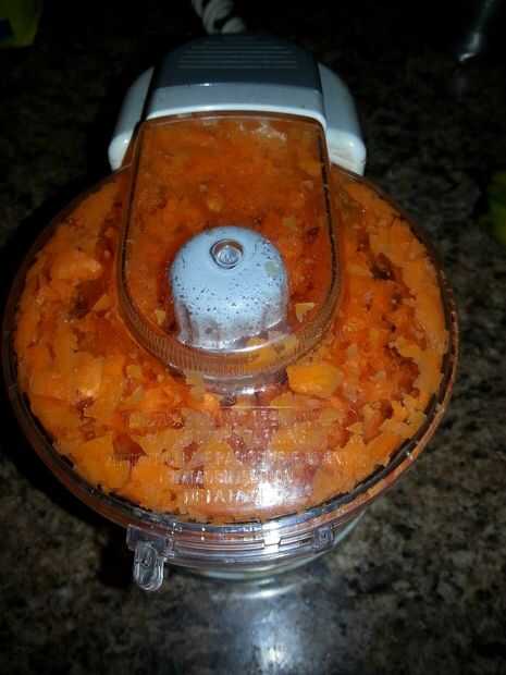 Usted quiere asegurarse de que las zanahorias son bien procesadas y en pedacitos muy pequeños utilizo un pequeño procesador de alimentos para picar a mi pequeño y agradable.