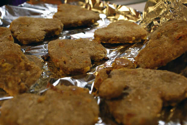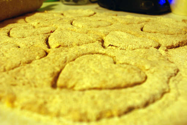 Cortar las formas que desea, si usted decide utilizar un cortador de galletas. Le estoy dando el más grande, en forma de corazón que trata a mi perro padres, gato, porque él es un grande, pit bull o análisis de laboratorio, para el más grande trata completamente no es mala idea.