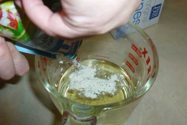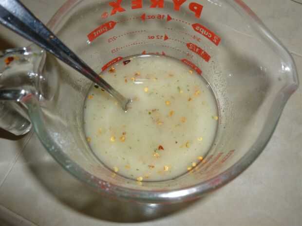 - Agregar el paquete de aderezo ranch y su cantidad solicitada de pimiento rojo triturado al aceite y mezcle bien.
