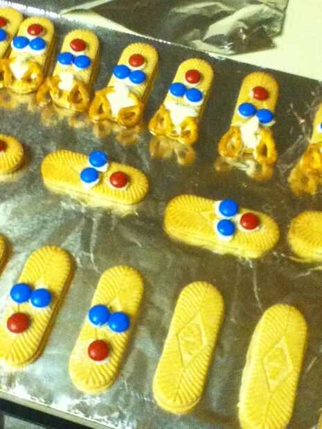 estos son locos fácil y super lindo!Paso 1:Betty Crocker galletas de mantequilla de maní mezclar (y los ingredientes necesarios para la mezcla)M & M minisGlaseado blanco (usé queso crema glaseado =)bolsa de ziplock de 1 sándwichpretzels de 1 paquete