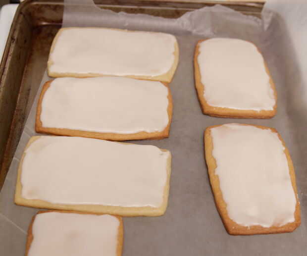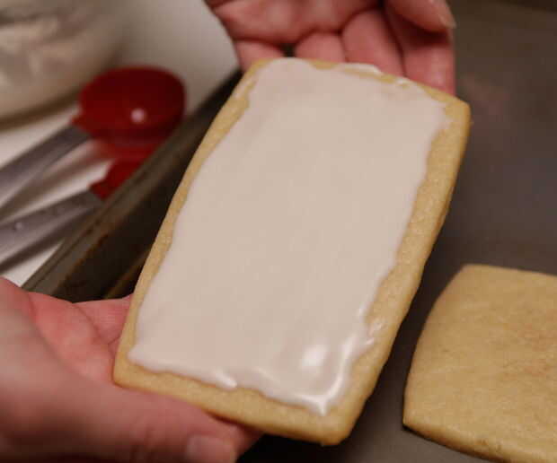 Heladas todas las cookies y luego darle el tiempo de congelación para secar. Tratar de no tocarlo, incluso cuando piensas que es seco. Se mete hasta la suavidad de la guinda.