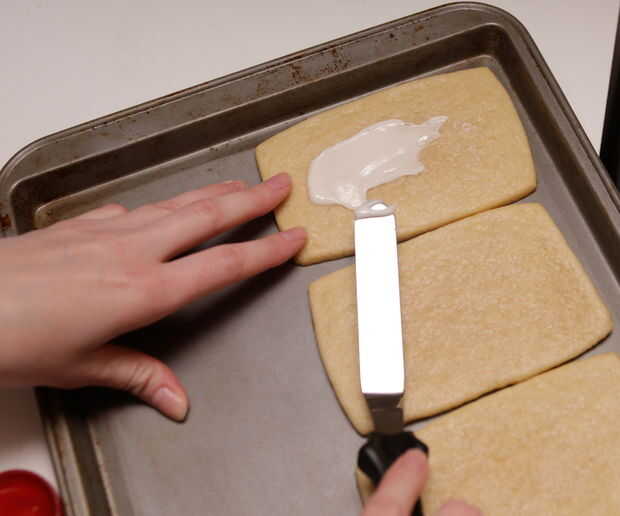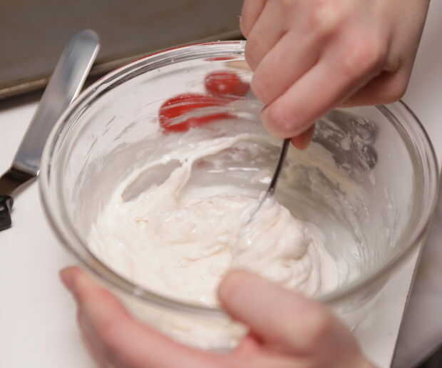 Utilicé este Wilton decoración espátula para difundir la guinda y funcionó realmente muy bien. Probablemente sólo puede utilizar un cuchillo de mantequilla regular también.