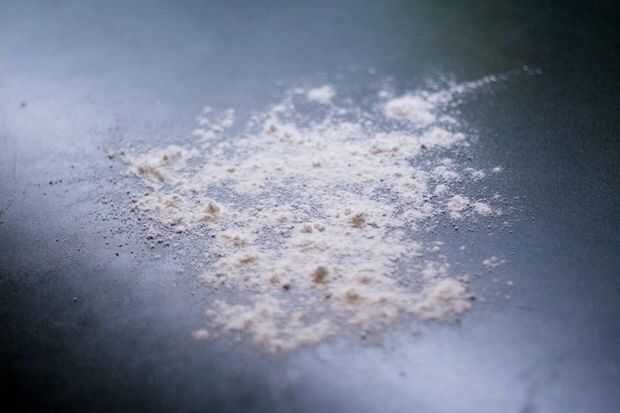 Espolvorear más harina sobre una superficie de kneeding.