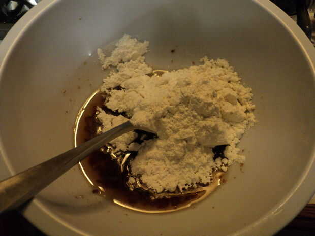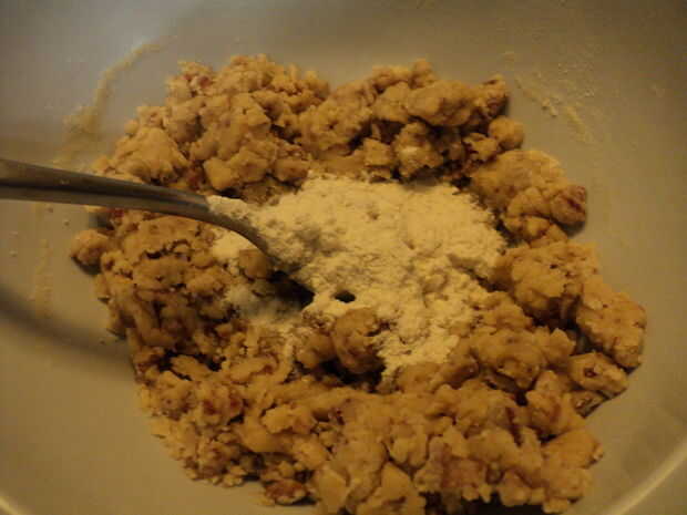 Mezclar en la harina la cucharada hasta obtener cochinilla clumpy montones de matas. Utilice un tenedor o las manos.