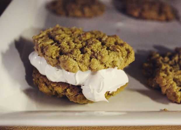 encontré esta receta en sallysbakingaddiction.com y pensó le daría un tiro. Crecí en pasteles de crema de avena Little Debbie en la casa, y aunque yo no a menudo disfrutar de galletas hoy en día, siempre es bueno tener una tratar que te trae.No estoy