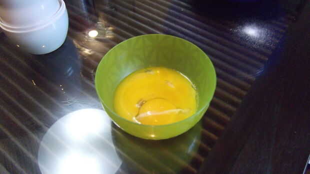 2. Mezcle el azúcar con la yema de huevo. Esto parecerá sorprendentemente extraño, realmente crudos huevos. NO SE DESANIME.