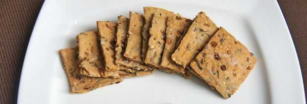 Galletas de trigo integral vegetarianas son snack crocante y crujiente, hecha con harina de trigo integral, sazonado con semillas de sésamo, semillas de lino, verduras frescas y sal. Es fácil de hacer y rápida de cocinar saludable comer bocado.