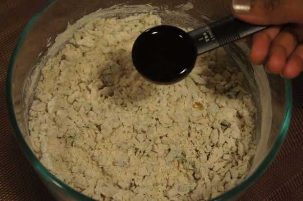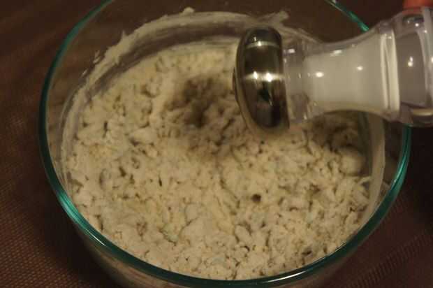 3) luego agregar agua poco a poco convirtiendo en una masa. (poco firme masa) cubra y déjelo reposar 10 minutos.