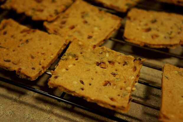 5) retirar y dejarlo enfriar completamente. Crujiente pan integral galletas está listo para ser servido. Esta puede almacenarse en un recipiente hermético para más adelante.