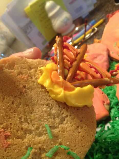 taaan... ¡ Estoy había obsesionada con el libro Hola Magdalenay decidió que iba a hacer Larry las magdalenas pavo para acción de gracias! La primera foto es cómo resultaron mis cupcakes, y la segunda foto es lo que parecían los cupcakes en el libro!P
