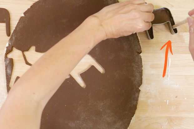 Si usted necesita cualquiera de los bordes de las galletas cortadas con el lado equivocado de la cuchilla de limpieza, use un cuchillo emparejamiento para cortar suavemente cualquier bit de exceso/extraña masa.