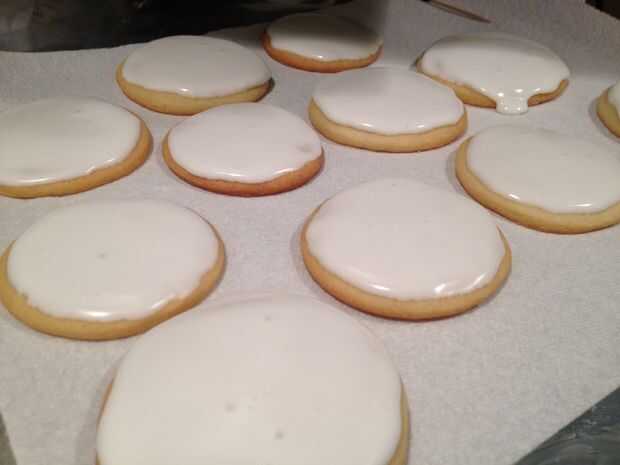 Las cookies de hielo con un cuchillo de mantequilla y obtener un piso agradable, suave, redondo superior. Una vez que esté listo, deje que se seque hasta que estén firmes al tacto.