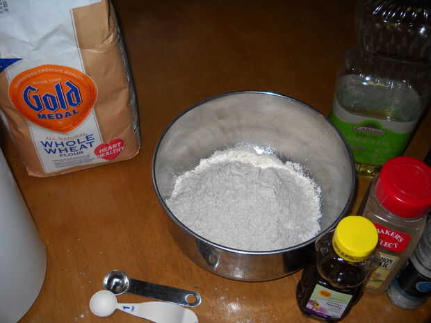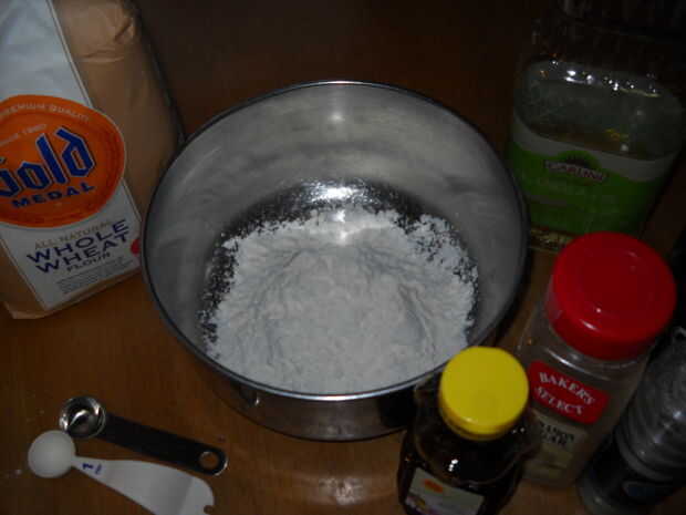 Añadir blanco una taza de harina al bowl.  Hacer lo mismo con harina de trigo.