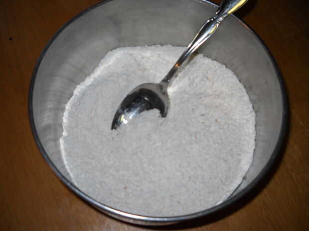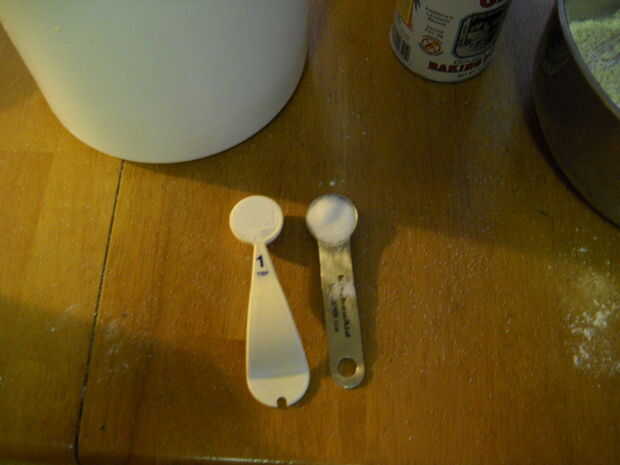 Añadir una cucharadita de polvo de hornear y 1/2 cucharadita de sal a la harina.  Mezclar!